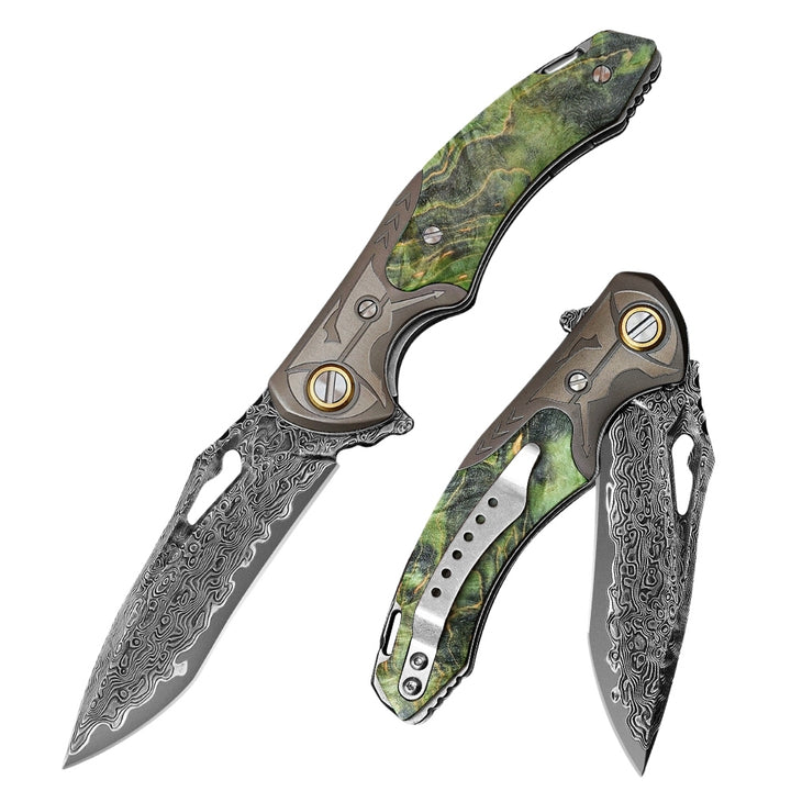 Pocket Knife - Hades Japanese VG10 Damascus Pocket Knife with Clip Stabilized Maple Burl Handle - Shokunin USA
