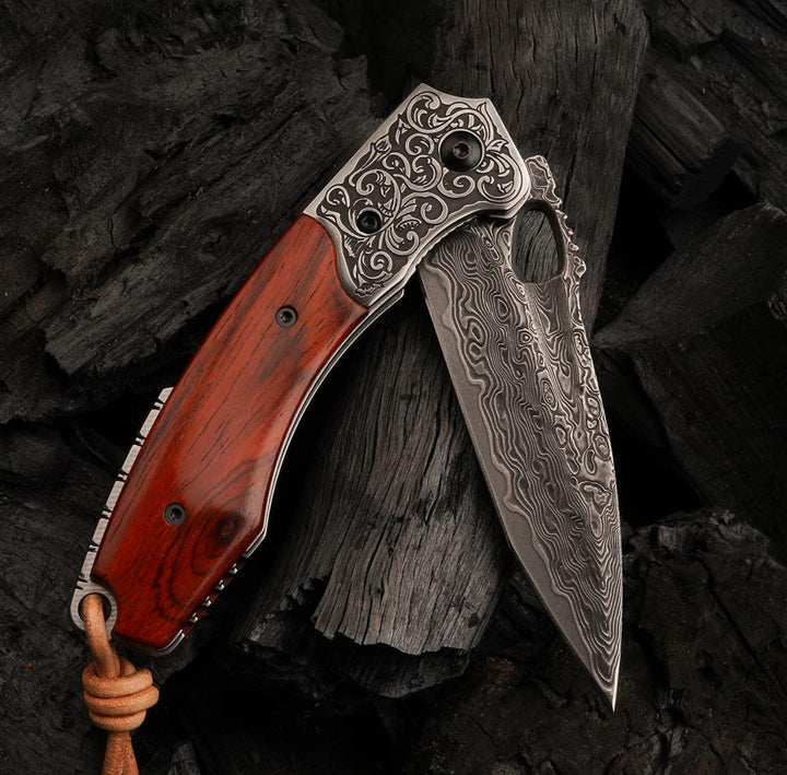 Pocket knife - Starchaser Japanese Damascus Pocket Knife with Exotic Sandal Wood Handle - Shokunin USA