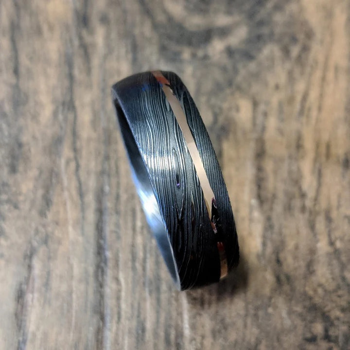 Damascus ring - Eternal Steel Black Damascus Steel Wedding Ring Band - Shokunin USA