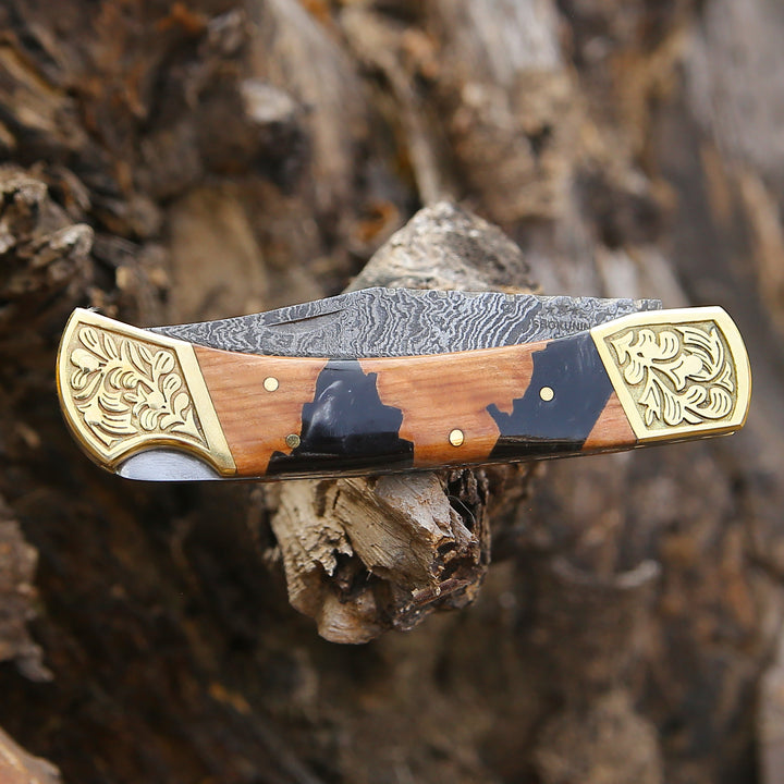 Las hojas de Damasco se forjan a mano mediante un proceso de capas, fusión y martillado. Esto da como resultado que cada hoja tenga un diseño único o, como algunos dirían, una “huella digital”. Todos y cada uno de los cuchillos son verdaderamente únicos.