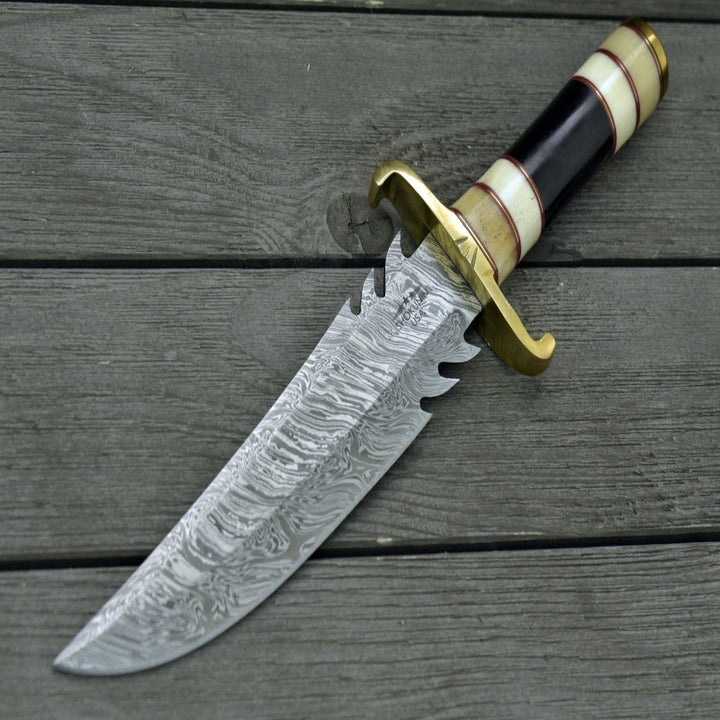 Damascus Knife - Damascus Bowie Knife with Bone & Horn Handle - Shokunin USA