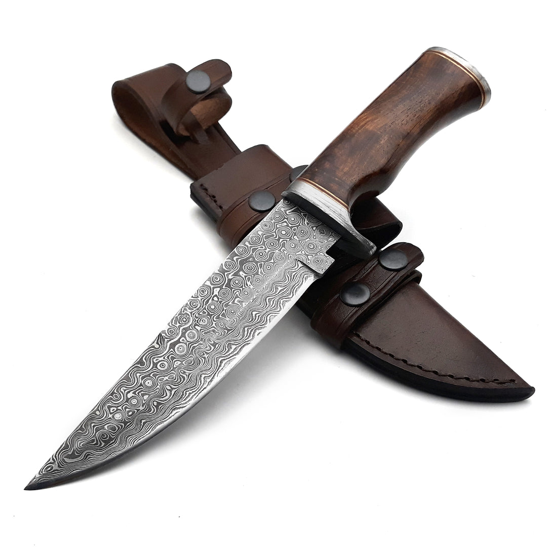 Las hojas de Damasco se forjan a mano mediante un proceso de capas, fusión y martillado. Esto da como resultado que cada hoja tenga un diseño único o, como algunos dirían, una “huella digital”. Todos y cada uno de los cuchillos son verdaderamente únicos.