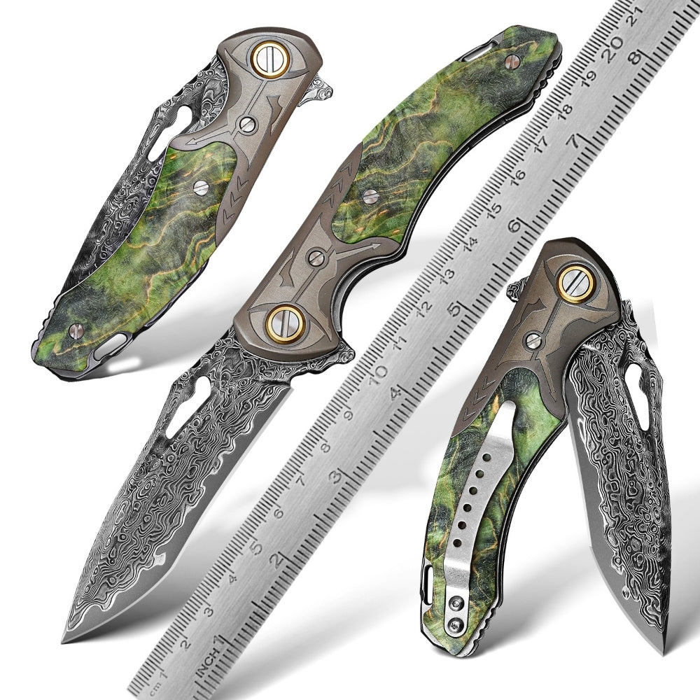 Pocket Knife - Hades Japanese VG10 Damascus Pocket Knife with Clip Stabilized Maple Burl Handle - Shokunin USA