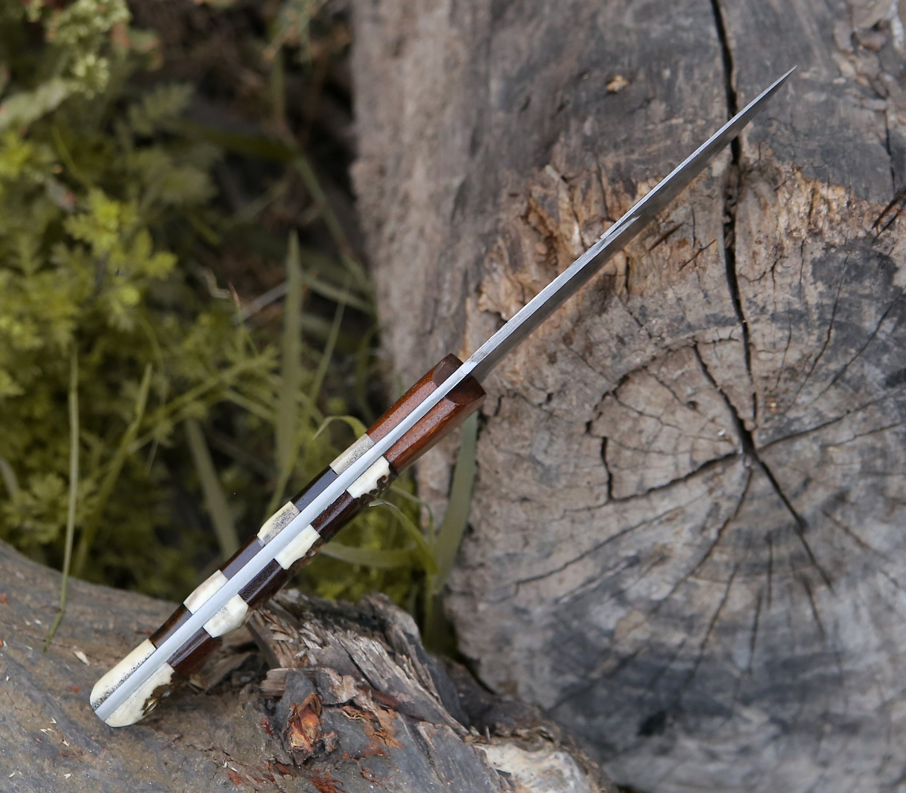Sentinel Gut Hook Jagdmesser mit Geweih und exotischem Rosenholz-Mosaikgriff
