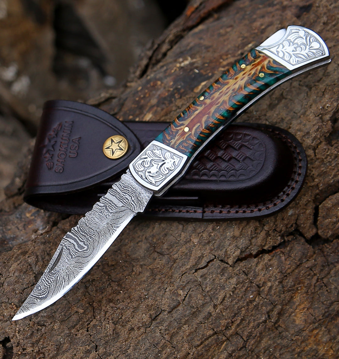 Folding Pocket Knife - Striker Pocket Knife with Pine Cone Handle - Shokunin USA