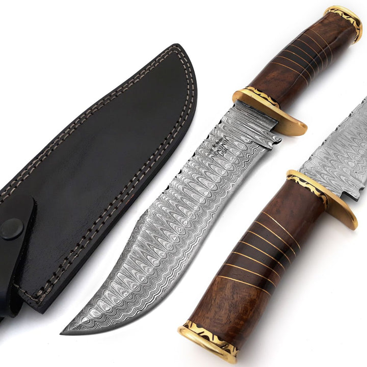 Surge Damast-Bowiemesser mit Palisander-Mosaik-Griff