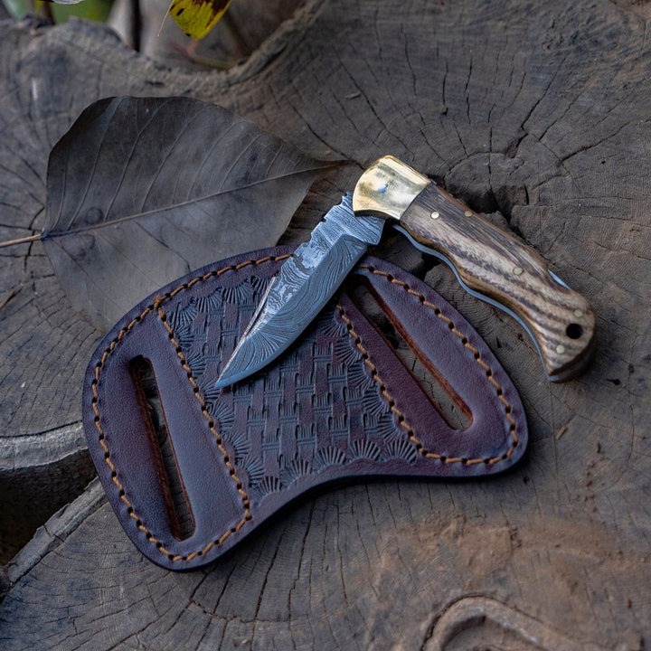 Pocket Knives - Vanguard Damascus Folding Knife with Charred Oak Handle - Shokunin USA